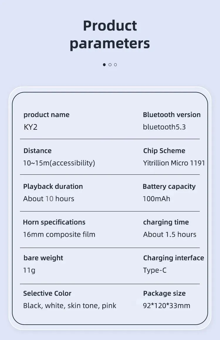 Description: Product Name:Clip on Bluetooth earphones Bluetooth Version:Bluetooth 5.4 earphones Music Time:5h Headphones Bluetooth Charging Time:1h Long Standby Time:30h Feature: ●Touch Control ●HiFi Sound ●HD Call ●Noise Reduction Package included 1*Single Earphones Bluetooth Earphones