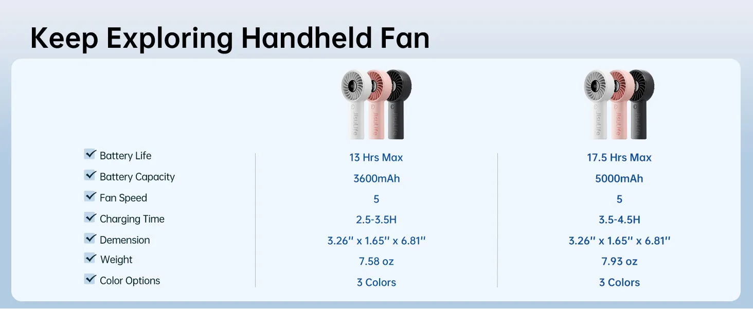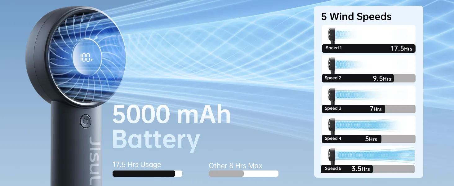 [Long-lasting Battery] 3600~5000mAh battery. 5-speed settings, 13~17.5-hour runtime, leading in battery life.